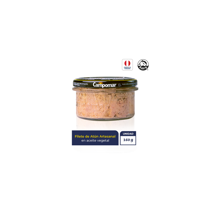 Filete de Atún Campomar, elaborado artesanalmente a mano y con la mejor materia prima de nuestro mar peruano.